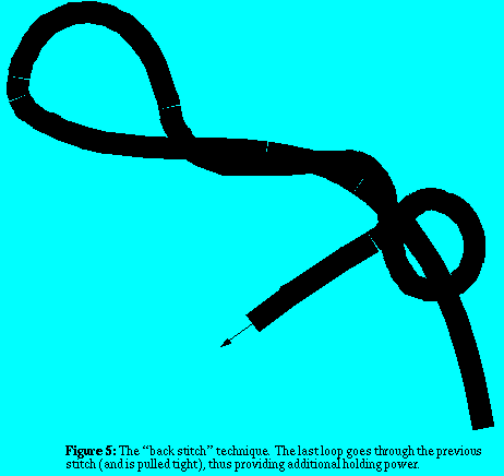 For extra holding strength, I often loop the fid and rope back through my last stitch. This back-stitch technique is shown in Figure 5.